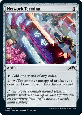 Incorporate the Network Terminal into your strategies alongside cards like Thopter Spy Network or Saheeli, Sublime Artificer, and you’ll find yourself with a seamless flow of card advantage and mana generation. Its lore-rich design reflects the technology-driven essence of Kamigawa, embodying the spirit of innovation that defines the set. Equip your deck with this common gem and watch your gameplay evolve!